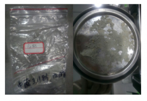 - 復(fù)位儀器,待儀器冷卻至40℃以下后,再取6.053克的氟化鈣礦粉(A3樣品)均勻鋪在樣品盤上,重復(fù)上述測試步驟;測試結(jié)束后得出第二組數(shù)據(jù),顯示樣品的水分含量為260%;